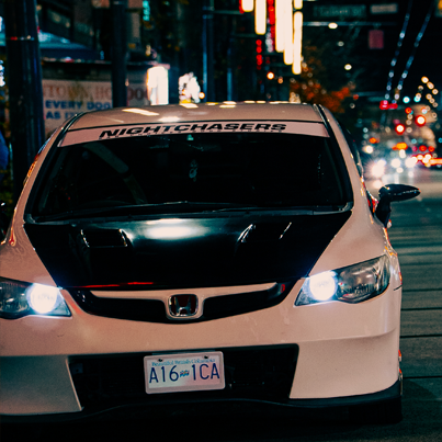 Make a bold statement with the official NightChasers windshield banner. Designed for the Vancouver car scene, this banner is built to be seen at meets, night drives, and events — not hidden in parking lots.